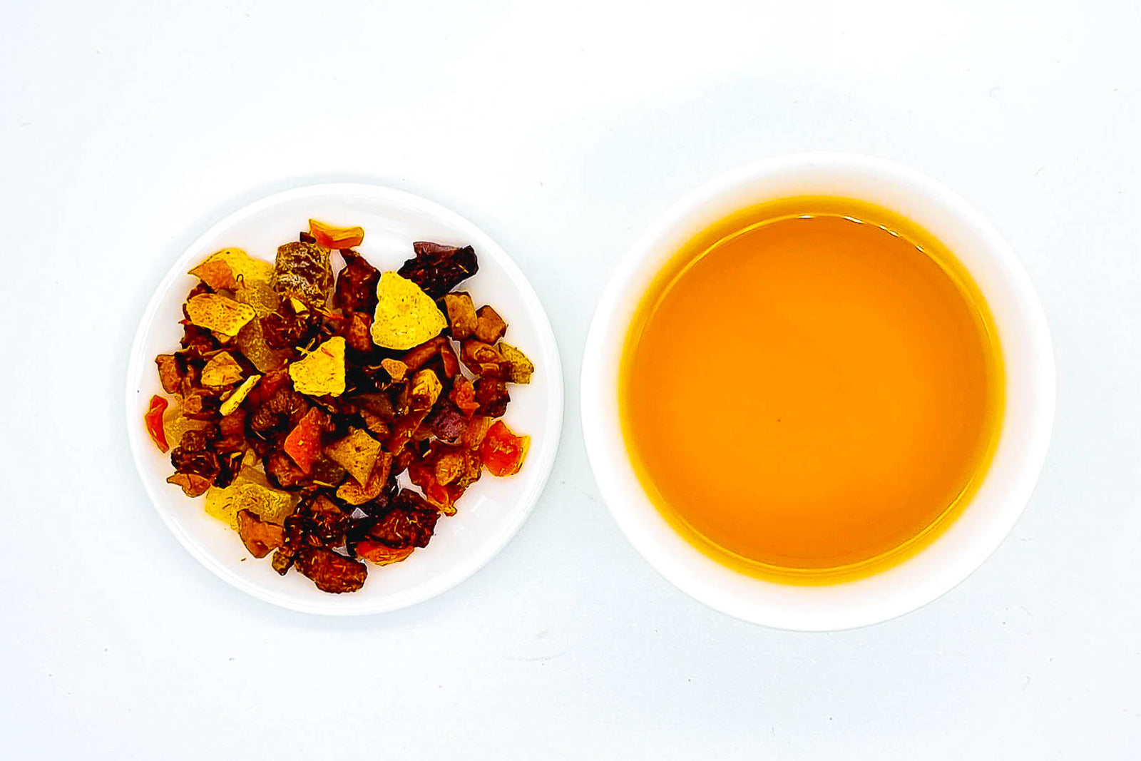 Der Früchtetee kommt ganz ohne künstliche Aromen aus und überzeugt sowohl heiß als auch kalt.